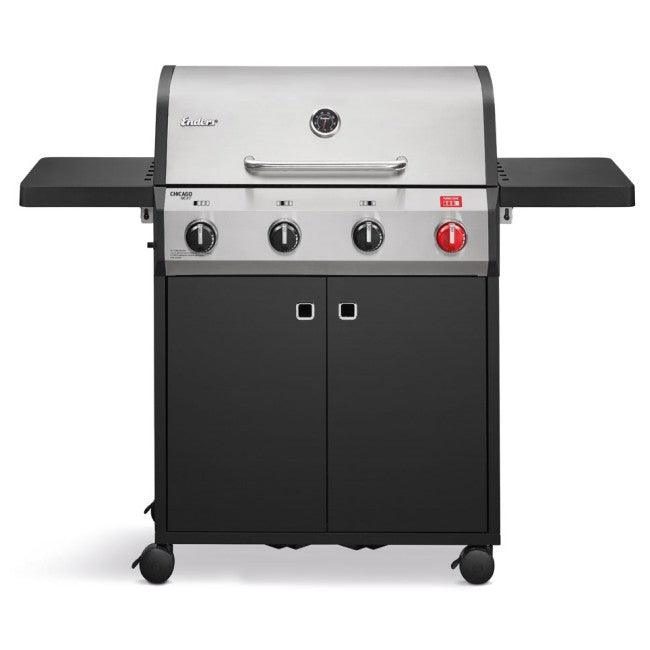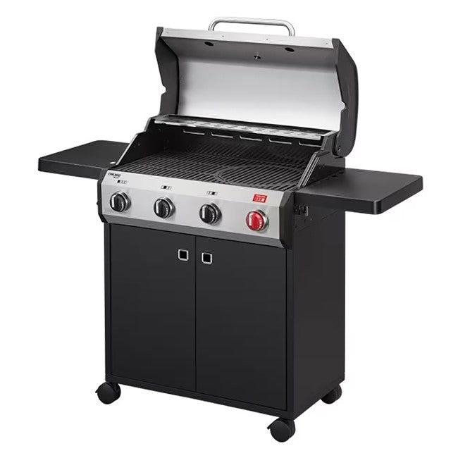 One for all. All in one. BBQs in the CHICAGO NEXT series are “grillrounders” – packed with features to keep you entertained.The 4 R Turbo naturally has an enamelled cast iron grill, while the TURBO ZONE™ slumbers underneath, allowing you to reach maximum temperatures on the grilling surface at turbo speed. To lower the temperature a little, on the other hand, there is a warming grade made of stainless steel. The grillrounder is finished off by the SWITCH GRID™ system, which allows you to use a Sear Grate, pizza stone, pan, poultry roaster or Dutch oven, and two folding side shelves.
