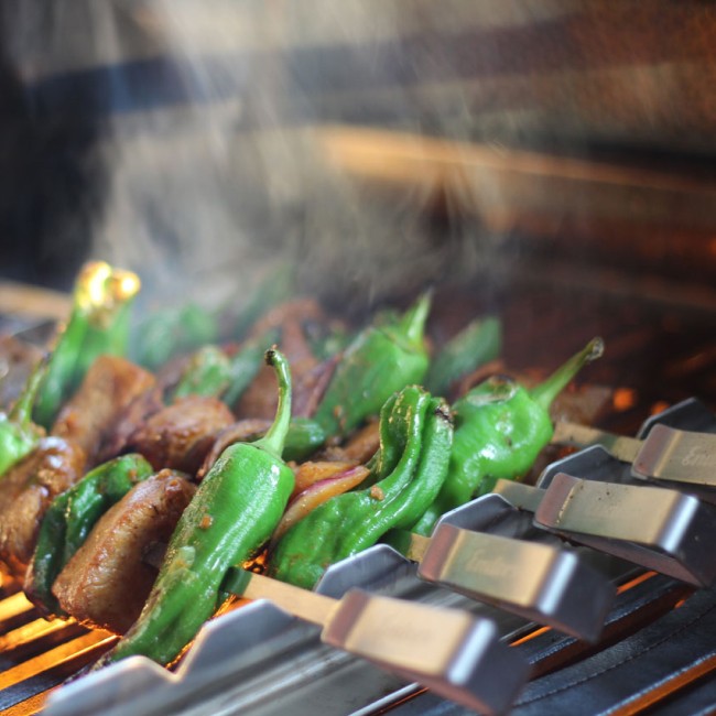 - Notches in the frame allow easy and targeted rotation of the shish kebabs